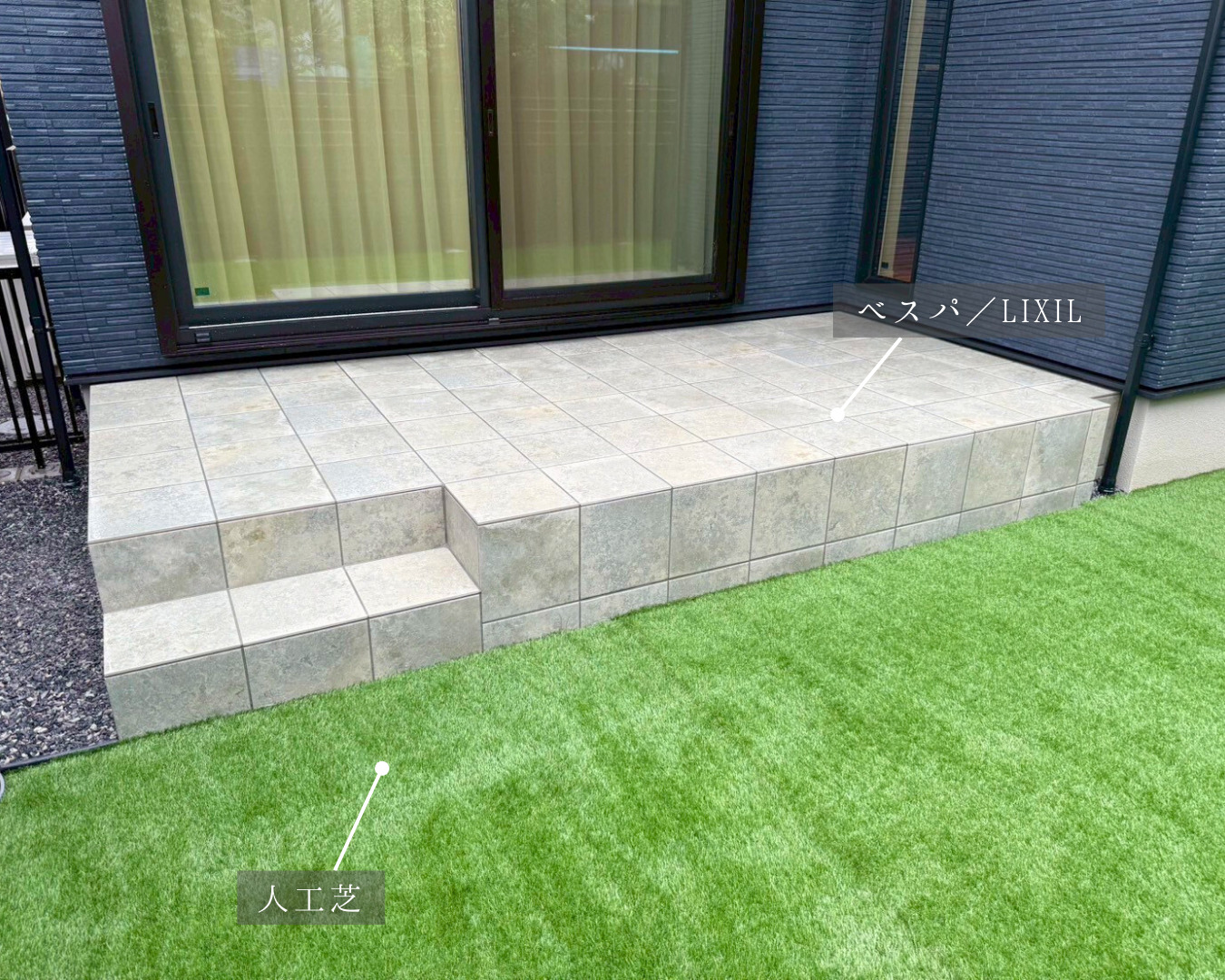 自然石の優雅な風合いを再現したタイルデッキは、耐久性が高くお手入れしやすいのが特徴です。