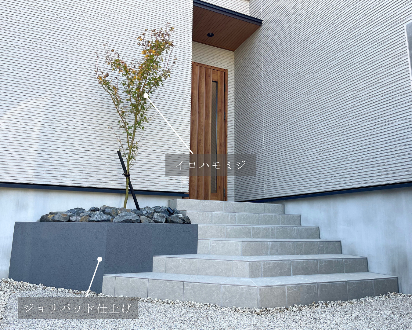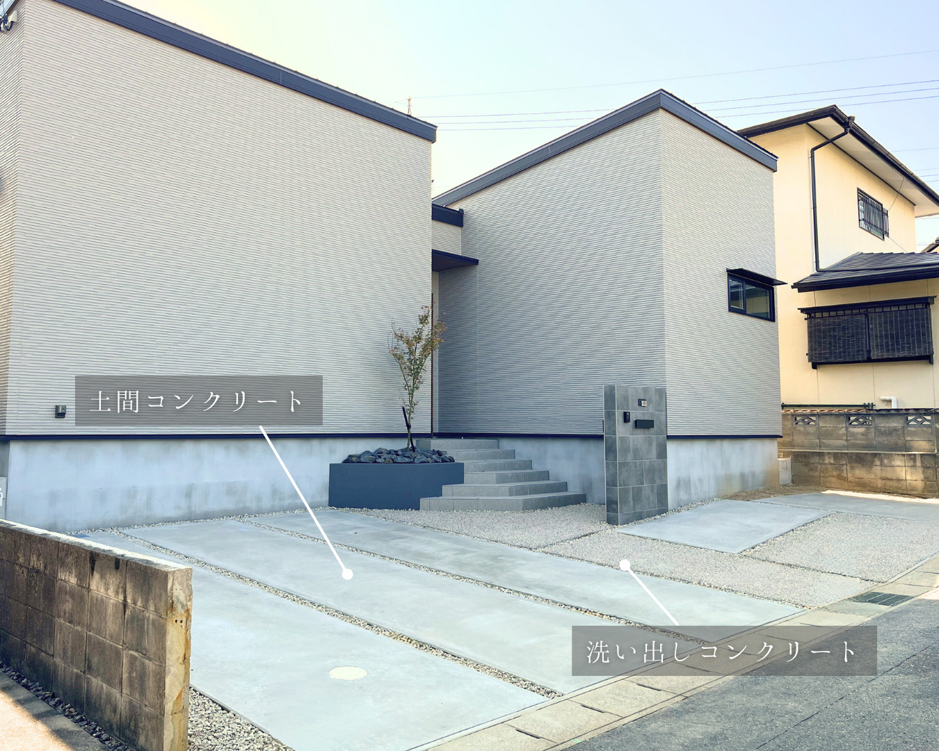 アプローチは洗い出しコンクリートを採用しました。